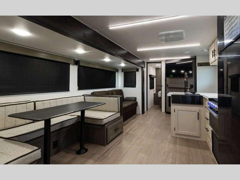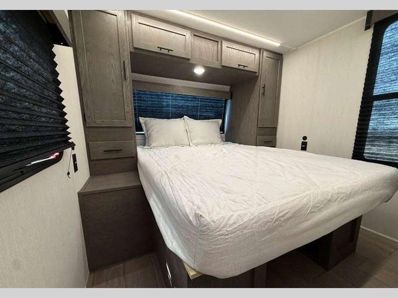 Sleeps 4 Slides 2 Length 34 ft 6 in Ext Width 8 ft Ext Height 11 ft 2 in Hitch Weight 1080 lbs GVWR 9750 lbs Dry Weight 7258 lbs Cargo Capacity 2492 lbs Fresh Water Capacity 81 gals Grey Water Capacity 70 gals Black Water Capacity 35 gals Available Beds Queen Refrigerator Type 12V Residential Style Refrigerator Size 10 cu ft Cooktop Burners 3 Number of Awnings 2 Water Heater Type On Demand Tankless AC BTU 15000 btu TV Info LED TV Awning Info 11' & 9' Axle Count 2 Shower Type Radius Electrical Service 30 amp Solar Wattage 100 watts Similar Floorplans