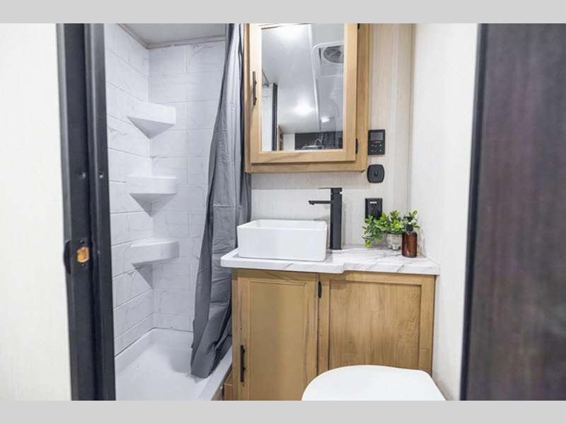 Sleeps 5 Slides 1 Length 31 ft 2 in Ext Width 8 ft Ext Height 10 ft 8 in Int Height 0 ft Hitch Weight 884 lbs GVWR 7884 lbs Dry Weight 6572 lbs Cargo Capacity 1312 lbs Fresh Water Capacity 52 gals Grey Water Capacity 38 gals Black Water Capacity 38 gals Furnace BTU 20000 btu Available Beds RV King Refrigerator Type 12V Cooktop Burners 3 Number of Awnings 1 Water Heater Type Tankless AC BTU 15000 btu Cargo Deck Size 0 ft Awning Info 15' Full Length Power w/LED Light Strip Axle Count 2 Shower Type Neo-Angled Solar Wattage 200 watts Similar Floorplans