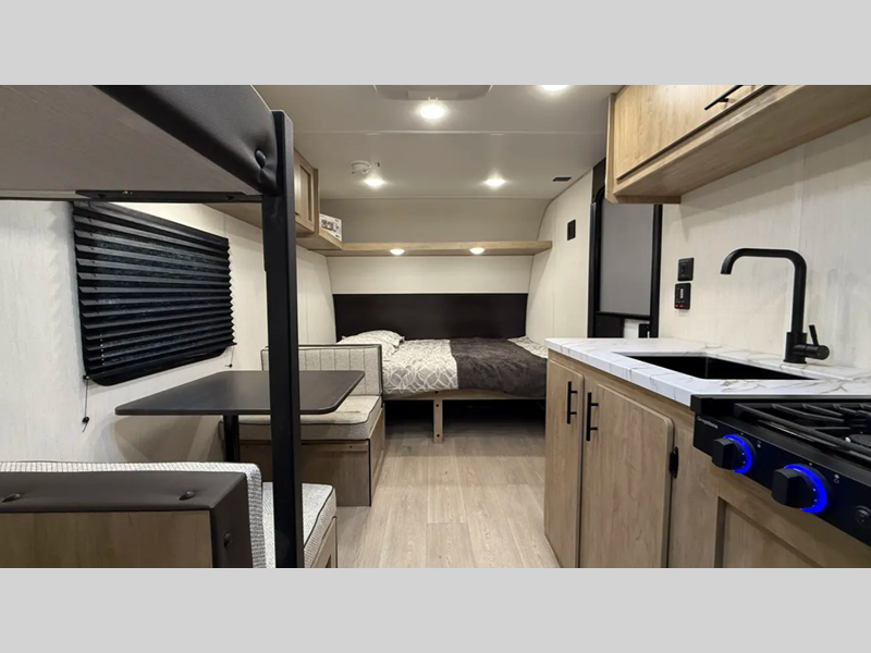 Sleeps 5 Length 21 ft 9 in Ext Width 7 ft 6 in Hitch Weight 393 lbs GVWR 5493 lbs Dry Weight 2995 lbs Cargo Capacity 2498 lbs Fresh Water Capacity 26 gals Grey Water Capacity 23 gals Black Water Capacity 23 gals Furnace BTU 5000 btu Number Of Bunks 2 Available Beds Queen Number of Awnings 1 Water Heater Capacity 6 gal Water Heater Type Turbo AC BTU 13500 btu Awning Info 12' Axle Count 1 Shower Type Tub/Shower Combo Similar Floorplans