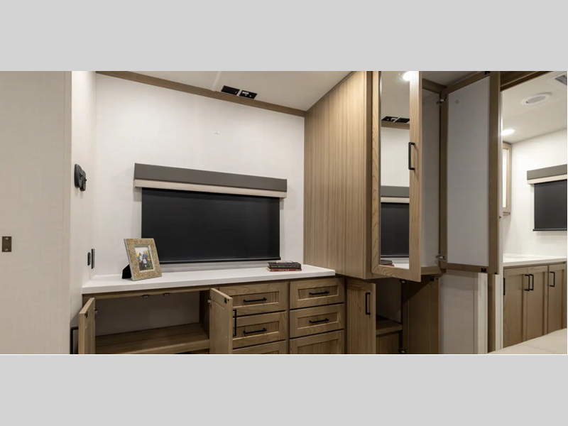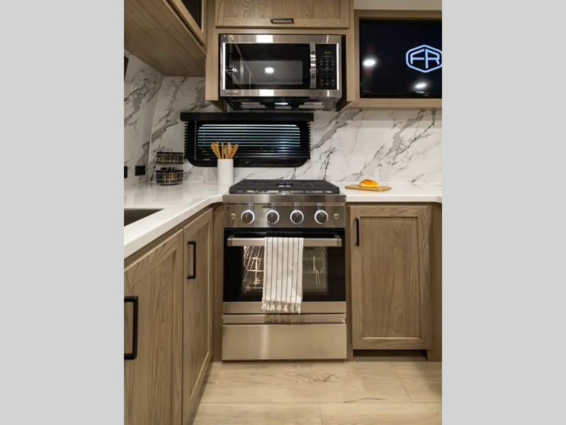 Sleeps 4 Slides 3 Length 36 ft 8 in Ext Width 8 ft Ext Height 11 ft 7 in Hitch Weight 1317 lbs Dry Weight 9614 lbs Cargo Capacity 1703 lbs Fresh Water Capacity 54 gals Grey Water Capacity 122 gals Black Water Capacity 53 gals Furnace BTU 35000 btu Available Beds Queen Refrigerator Type 12V Cooktop Burners 3 Number of Awnings 2 LP Tank Capacity 30 lbs Water Heater Capacity 6 gal Water Heater Type Quick Recovery Gas/Electric TV Info LR Smart TV Awning Info 10' & 16' Power w/Adjustable Rain Dump & LED Lights Axle Count 2 Washer/Dryer Available Yes Number of LP Tanks 2 Shower Type Shower w/Seat Electrical Service 50 amp Similar Floorplans