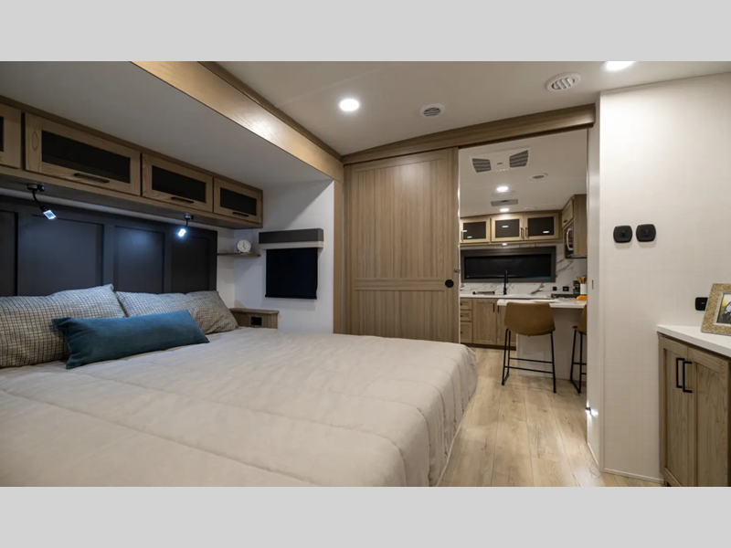 Sleeps 2 Slides 2 Length 29 ft 11 in Ext Width 8 ft Ext Height 11 ft 7 in Hitch Weight 1010 lbs Dry Weight 7649 lbs Cargo Capacity 2161 lbs Fresh Water Capacity 54 gals Grey Water Capacity 78 gals Black Water Capacity 39 gals Furnace BTU 35000 btu Available Beds King Refrigerator Type 12V Cooktop Burners 3 Number of Awnings 1 LP Tank Capacity 30 lbs Water Heater Capacity 6 gal Water Heater Type Quick Recovery Gas/Electric TV Info LR Smart TV Awning Info 22' Power w/Adjustable Rain Dump & LED Lights Axle Count 2 Number of LP Tanks 2 Shower Type Shower w/Seat Electrical Service 50 amp Similar Floorplans