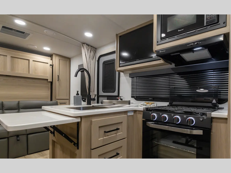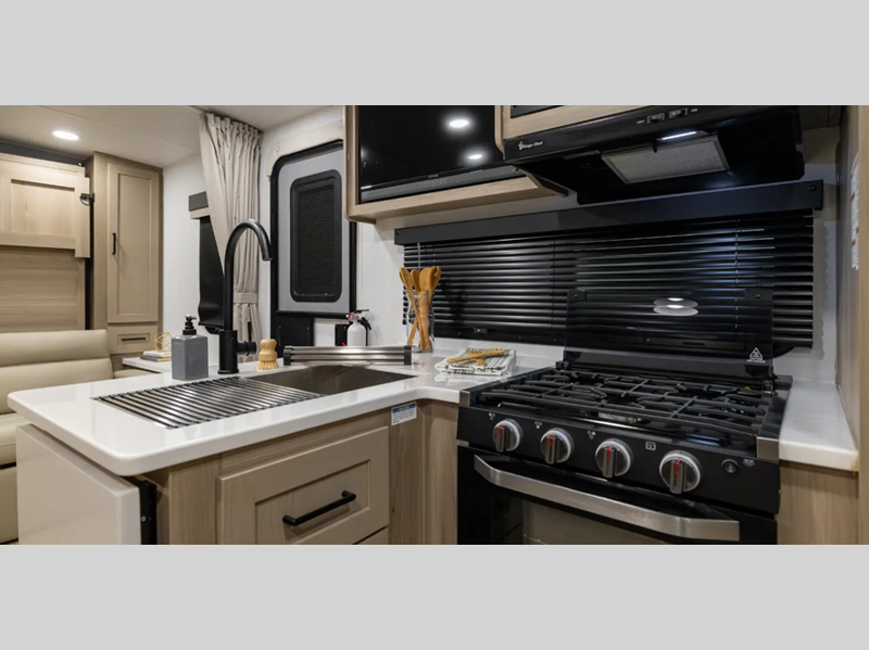 Sleeps 3 Slides 1 Length 22 ft 4 in Ext Width 8 ft Ext Height 10 ft 3 in Hitch Weight 557 lbs Dry Weight 4493 lbs Cargo Capacity 1344 lbs Fresh Water Capacity 54 gals Grey Water Capacity 29 gals Black Water Capacity 29 gals Furnace BTU 20000 btu Available Beds RV Queen Refrigerator Type 12V Cooktop Burners 3 Number of Awnings 1 LP Tank Capacity 30 lbs Water Heater Type Gas/Electric with Quick Recovery AC BTU 15000 btu TV Info LR 12V Smart Entertainment TV Awning Info 14' Power with Adjustable Rain Dump and LED Lights Axle Count 2 Number of LP Tanks 2 Shower Type Radius Similar Floorplans